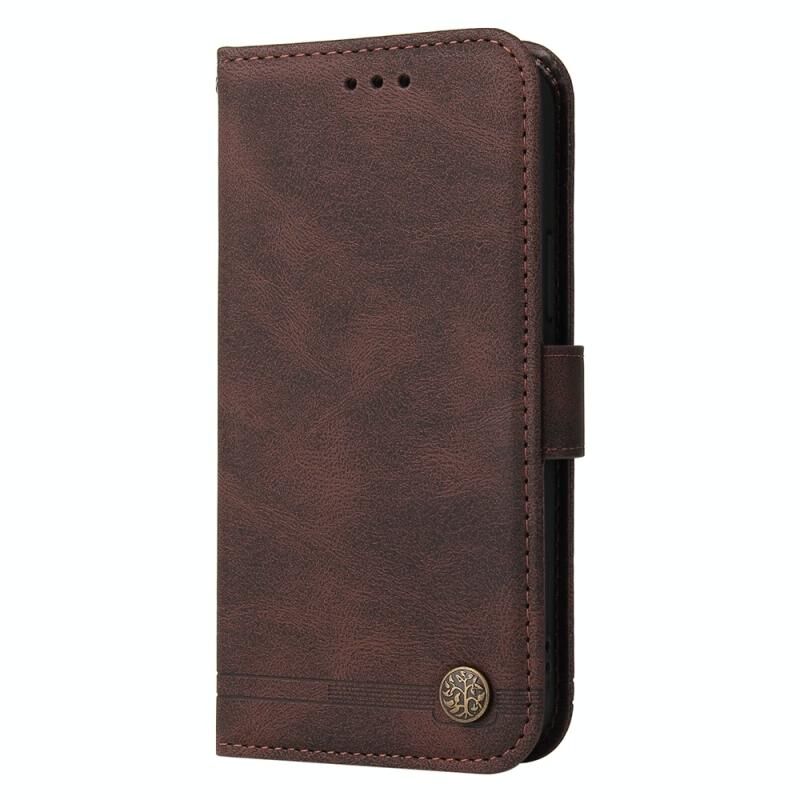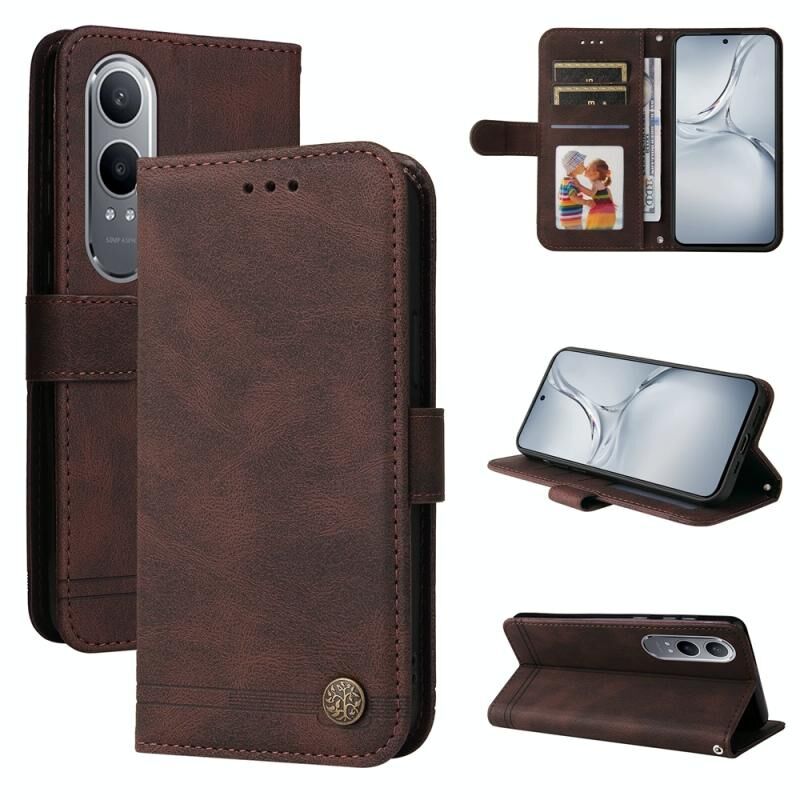 Για OnePlus Nord CE4 Lite δέρμα αίσθηση ζωής δέντρο μεταλλικό κουμπί δέρμα τηλέφωνο υπόθεση (καφέ)