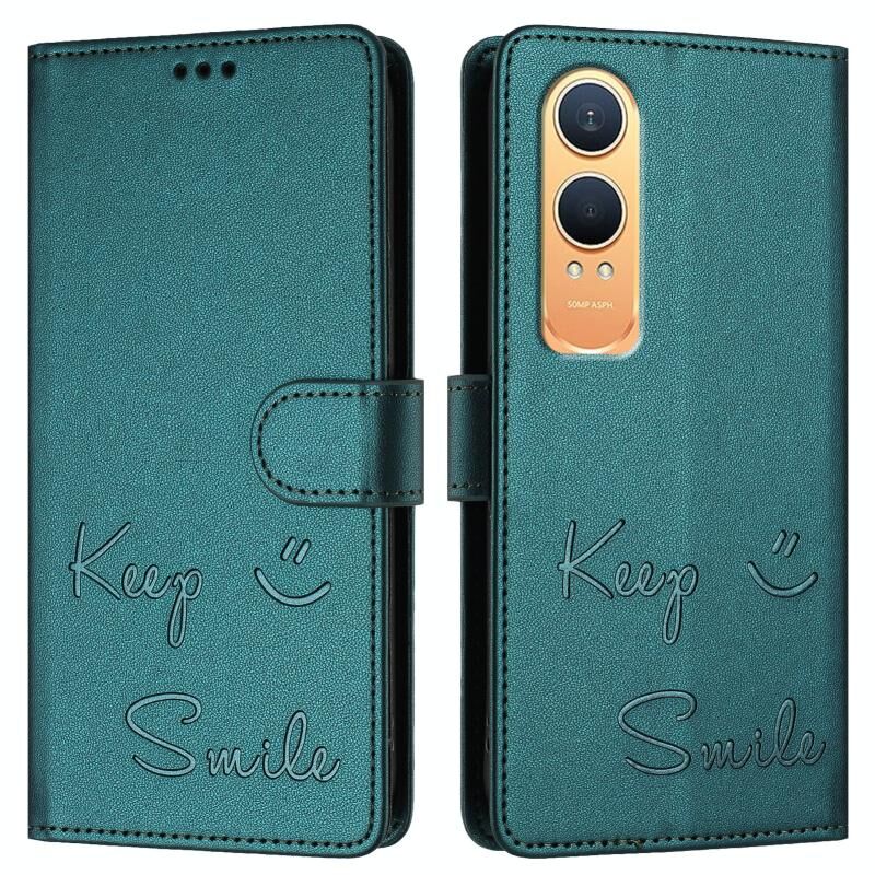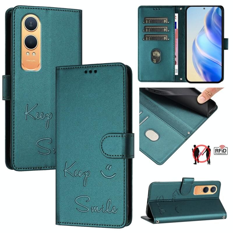 Για OnePlus Nord CE4 Lite Χαμόγελο ανάγλυφο RFID δερμάτινη θήκη τηλεφώνου (Peacock Green)