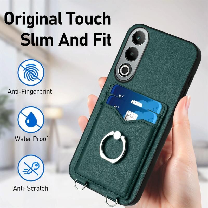 Για OnePlus Nord CE4 / OPPO K12 5G R20 Crossbody σχοινί δαχτυλίδι κάρτας κάτοχος τηλέφωνο υπόθεση (πράσινο)