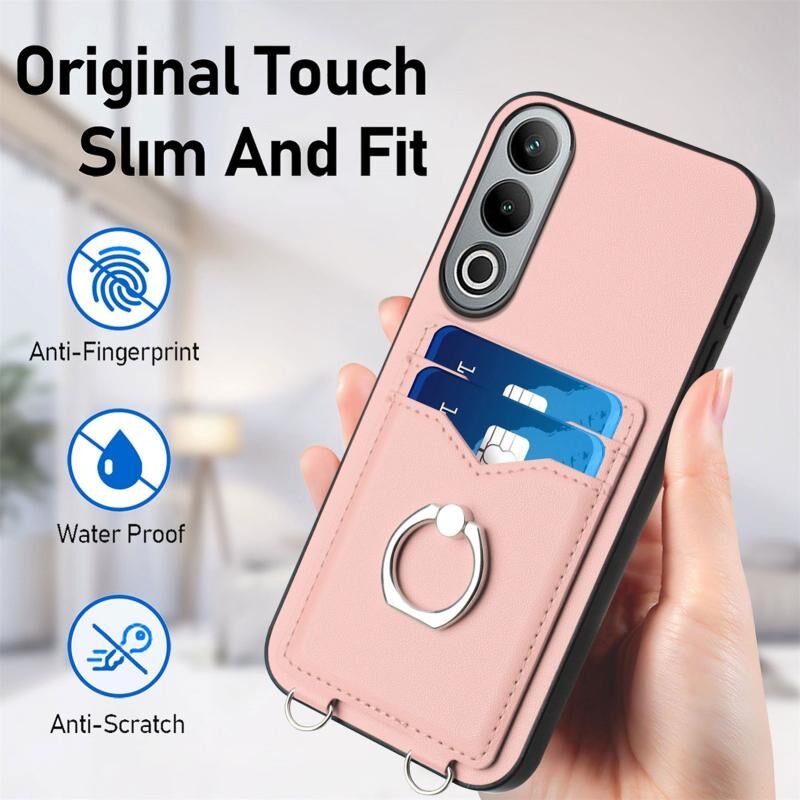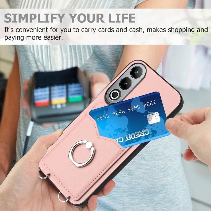 Για OnePlus Nord CE4 / OPPO K12 5G R20 δαχτυλίδι κάτοχος κάρτας τηλέφωνο υπόθεση (ροζ)