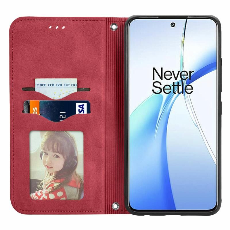 Για OnePlus Nord CE4 Retro δέρμα αίσθηση μαγνητική Flip δέρμα τηλέφωνο υπόθεση (κόκκινο)