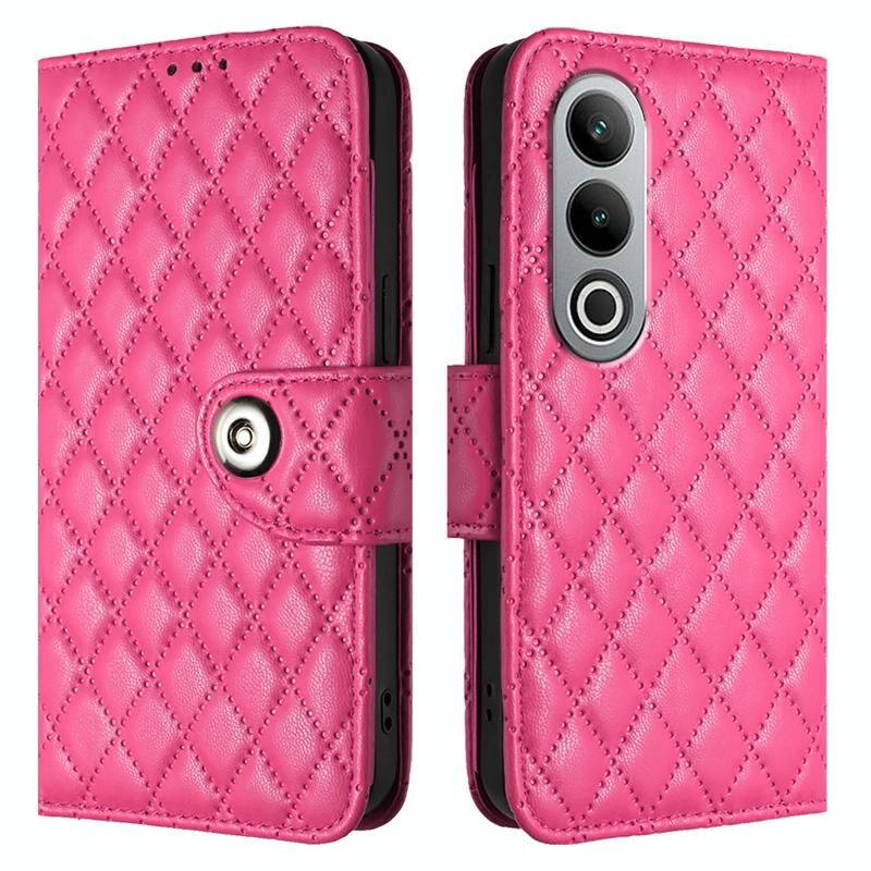 Για OnePlus Nord CE4 Rhombic υφή Flip υπόθεση τηλεφώνου δέρμα με κορδόνι (Rose Red)
