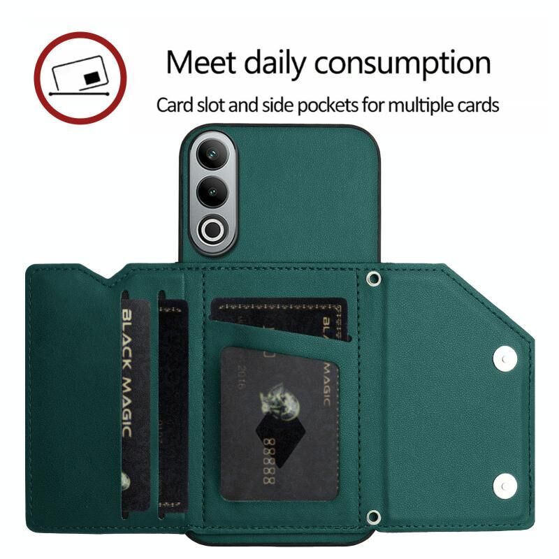 Για OnePlus Nord CE4 Skin Feel Τέσσερις υποδοχές κάρτας υπόθεση τηλεφώνου με λουράκι καρπού (πράσινο)