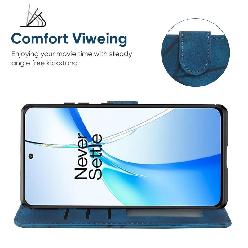 Για OnePlus Nord CE4 δέρμα αίσθηση γεωμετρικών γραμμών δερμάτινη θήκη τηλεφώνου (μπλε)