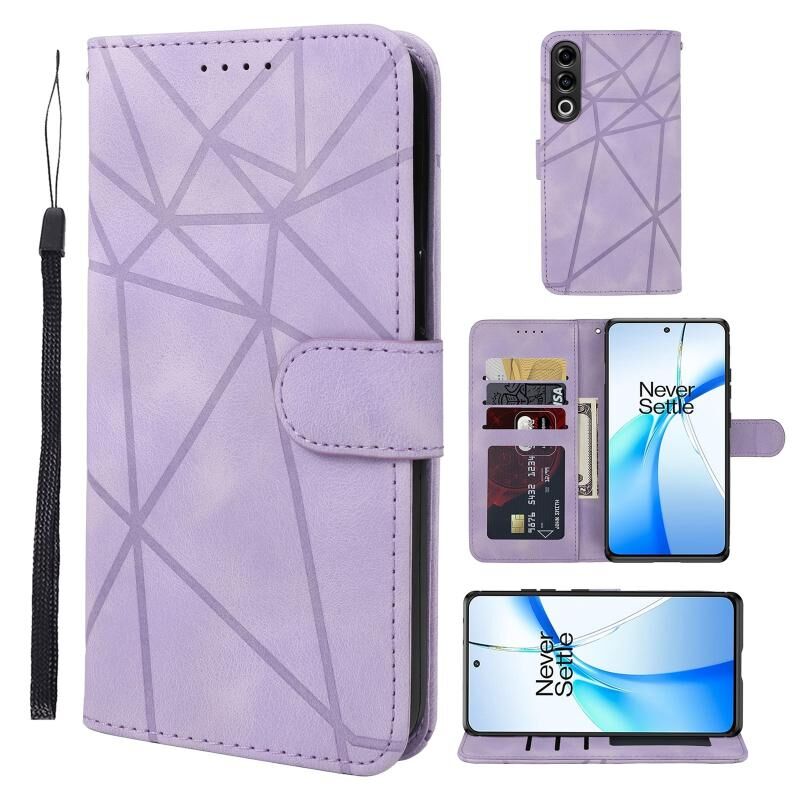 Για OnePlus Nord CE4 δέρμα αίσθηση γεωμετρικών γραμμών δερμάτινη θήκη τηλεφώνου (μωβ)