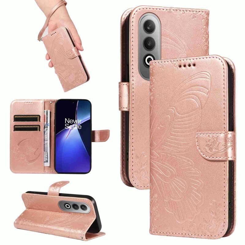 Θήκη τηλεφώνου από δέρμα με ανάγλυφο σχέδιο πεταλούδας Swallowtail για OnePlus Nord CE4 (Μπλε)