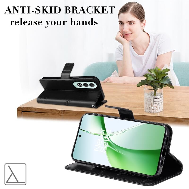 Για OnePlus Nord CE4 Δέντρο & Cat ανάγλυφο μοτίβο Flip υπόθεση τηλεφώνου δέρμα (μαύρο)