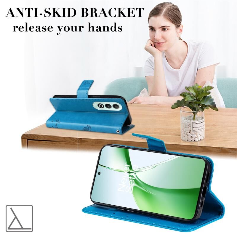 Για OnePlus Nord CE4 Δέντρο & Cat ανάγλυφο μοτίβο Flip υπόθεση τηλεφώνου δέρμα (μπλε)