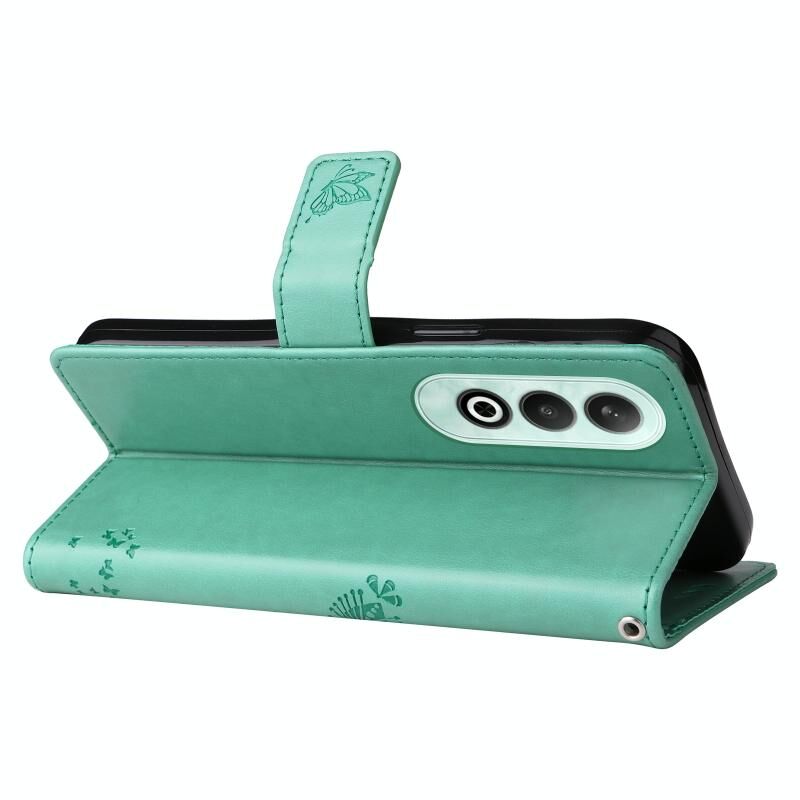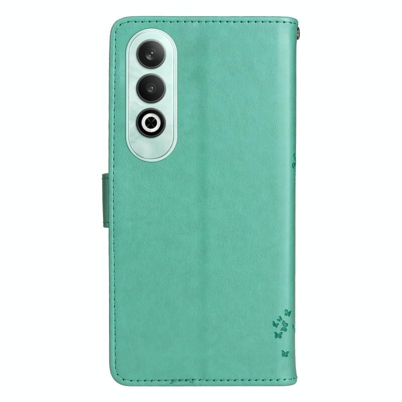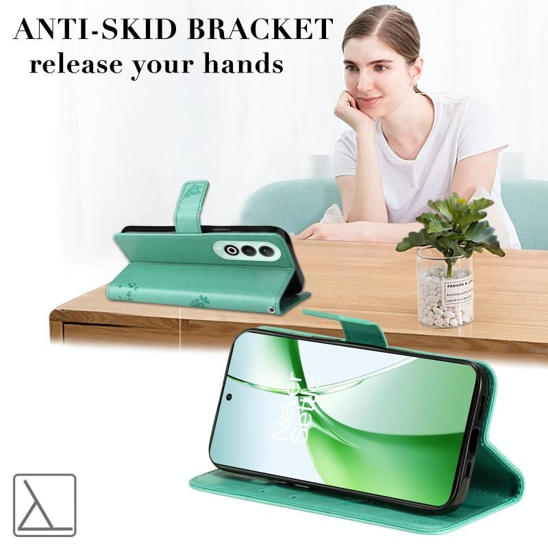 Για OnePlus Nord CE4 Tree & Cat ανάγλυφο μοτίβο Flip υπόθεση τηλεφώνου δέρμα (πράσινο)