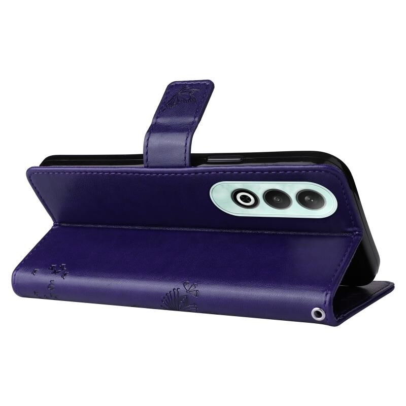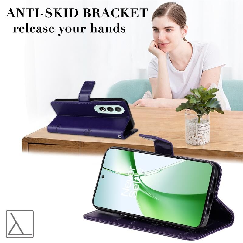 Για OnePlus Nord CE4 Δέντρο & Cat ανάγλυφο μοτίβο Flip υπόθεση τηλεφώνου δέρμα (μωβ)