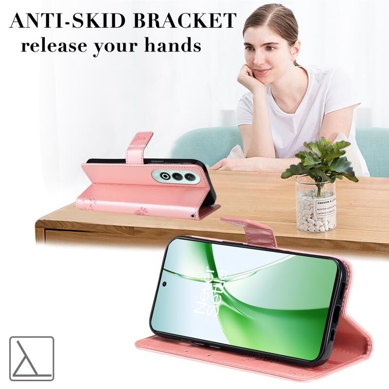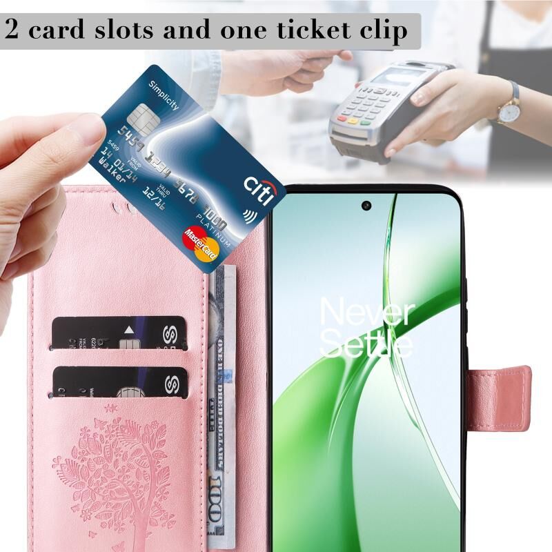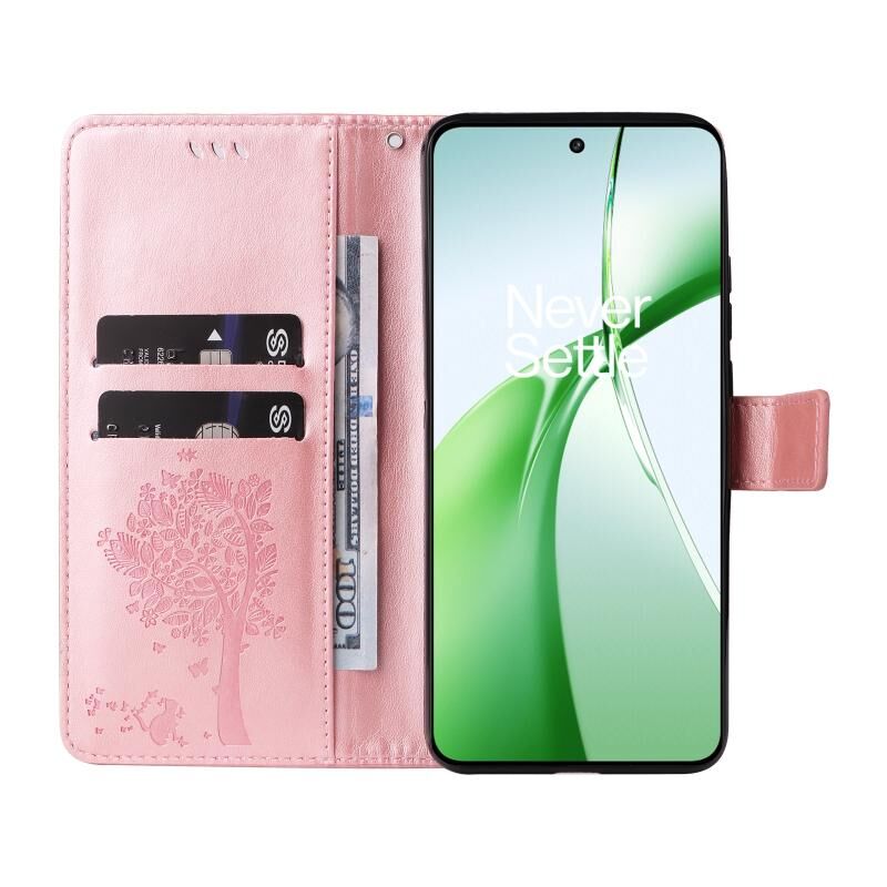 Για OnePlus Nord CE4 Δέντρο & Cat ανάγλυφο μοτίβο Flip υπόθεση τηλεφώνου δέρμα (Rose Gold)