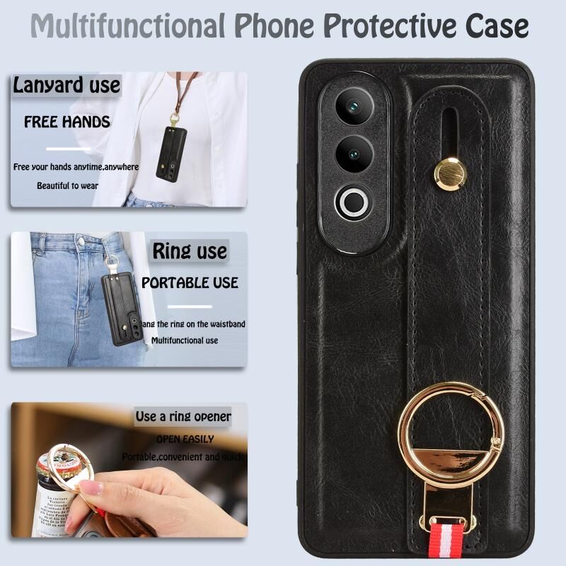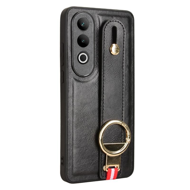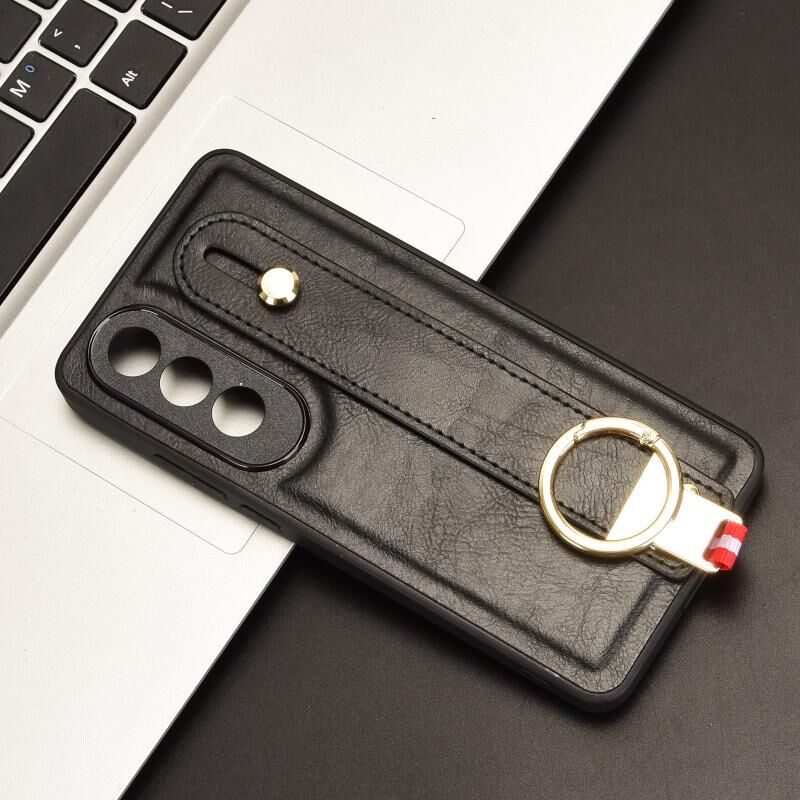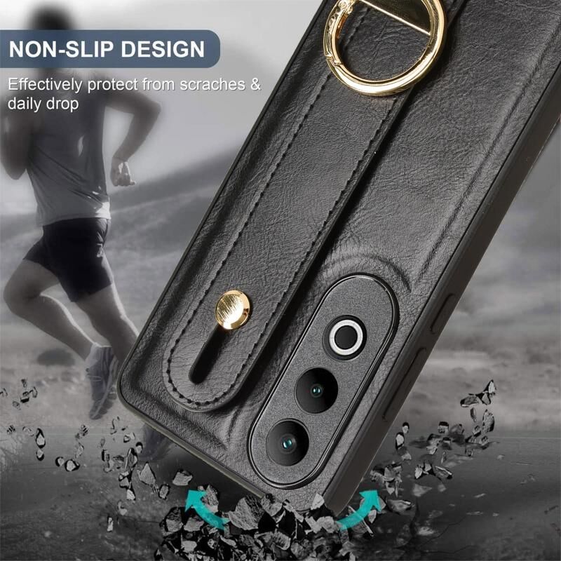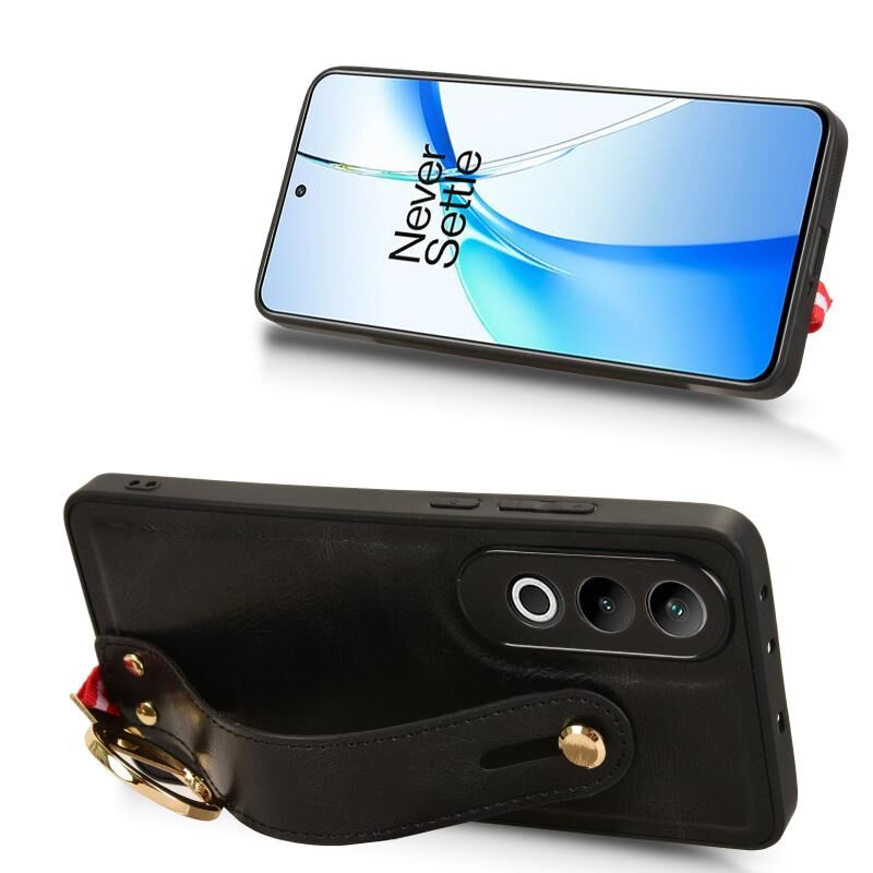 Για OnePlus Nord CE4 Wristband δέρμα πίσω τηλέφωνο υπόθεση (μαύρο)