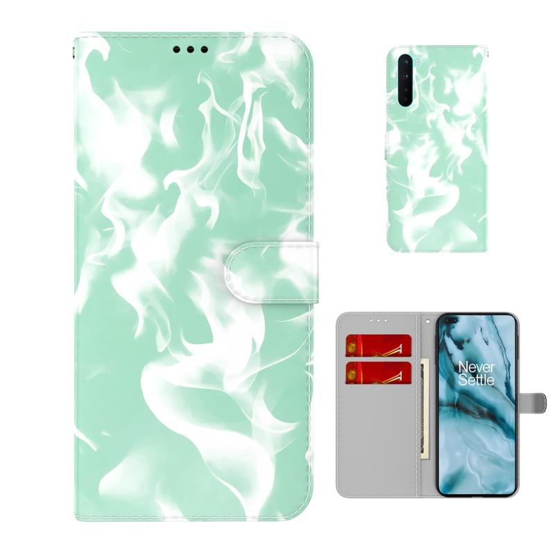 For OnePlus Nord Cloud Fog Pattern Horizontal Flip Leather Case with Holder & Card Slot & Wallet(Mint Green)