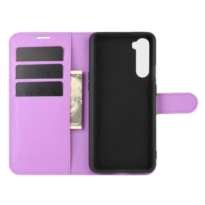 Για OnePlus Nord Litchi Υφή Οριζόντια Flip προστατευτική θήκη με κάτοχο & υποδοχές για κάρτες & πορτοφόλι (μωβ)