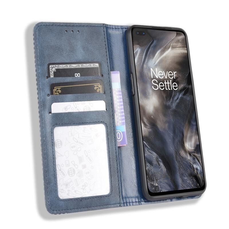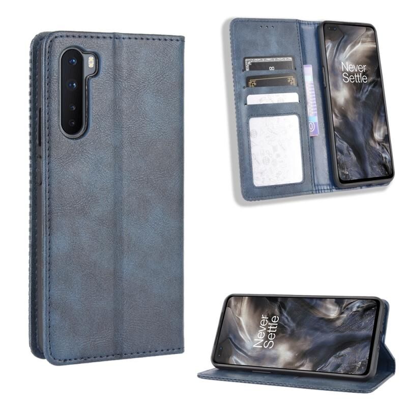Για OnePlus Nord Μαγνητική πόρπη Retro Crazy Horse Υφή οριζόντια Flip δερμάτινη θήκη με κάτοχο & υποδοχές για κάρτες & πλαίσιο φωτογραφιών (μπλε)