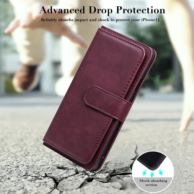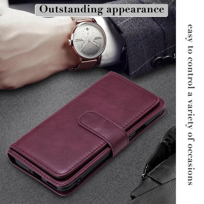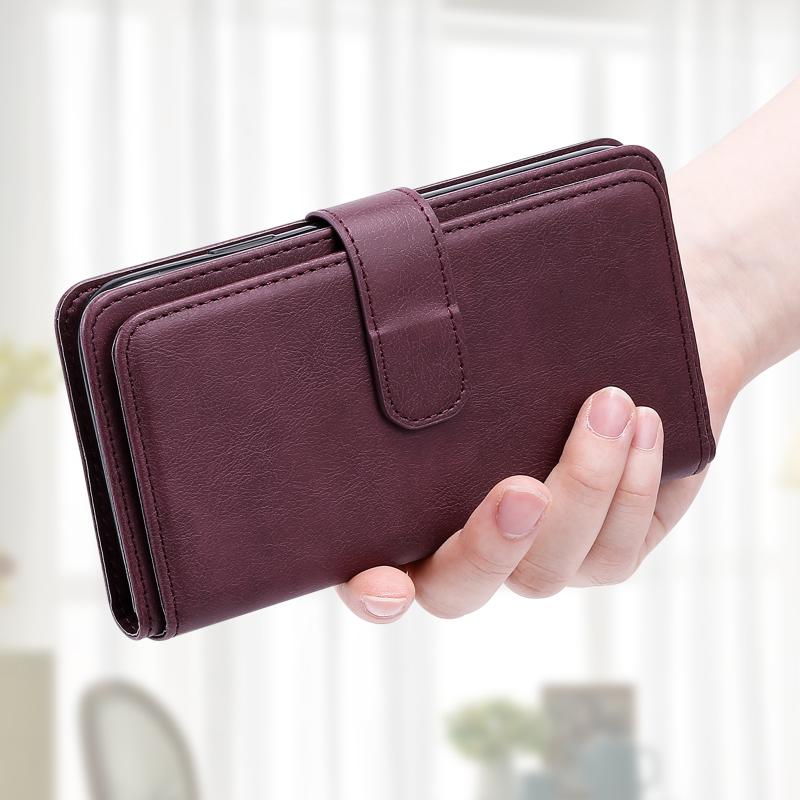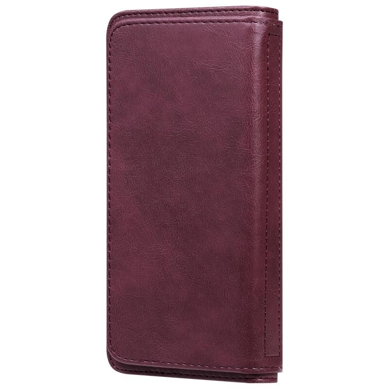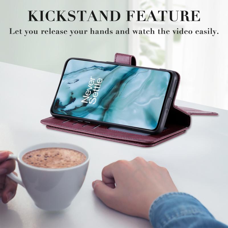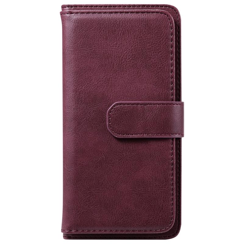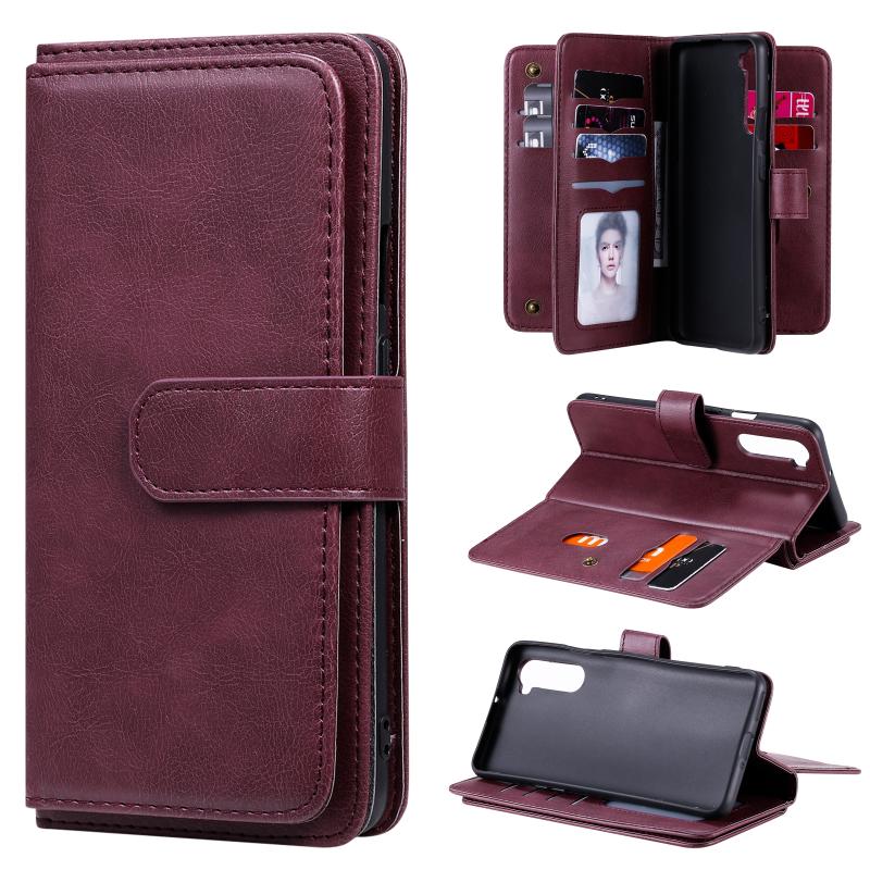 For Oneplus Nord Multifunctional Magnetic Copper Buckle Horizontal Flip Solid Color Leather Case with 10 Card Slots & Wallet & Holder & Photo Frame(Wine Red)