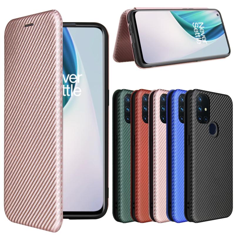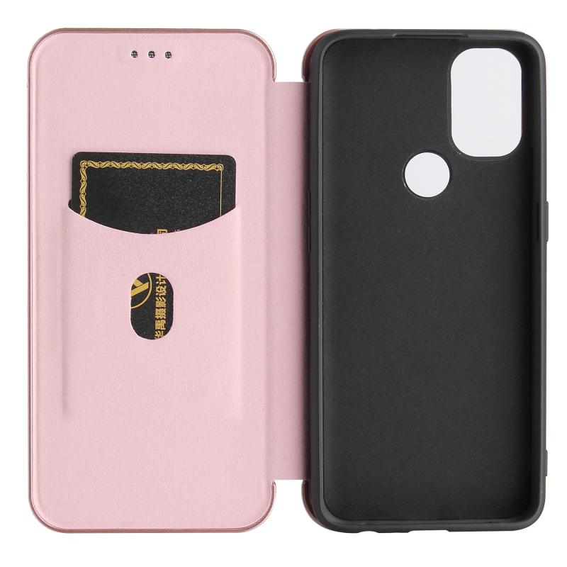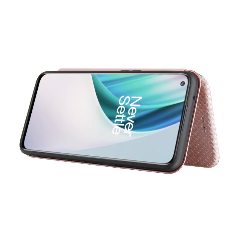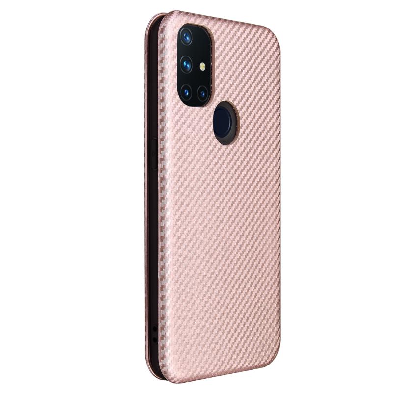 For OnePlus Nord N10 5G Carbon Fiber Texture Horizontal Flip TPU + PC + PU Leather Case with Card Slot(Pink)