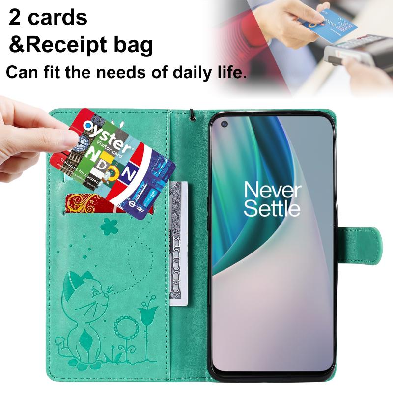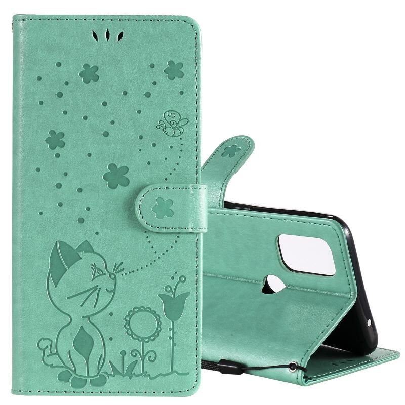 For OnePlus Nord N10 5G Cat Bee Embossing Pattern Shockproof Horizontal Flip Leather Case with Holder & Card Slots & Wallet(Green)