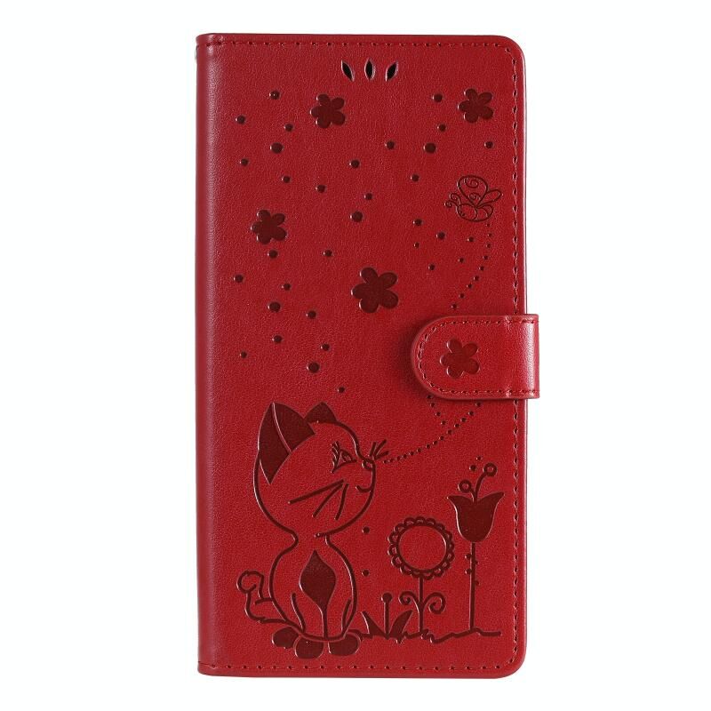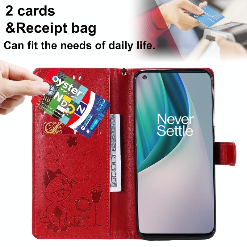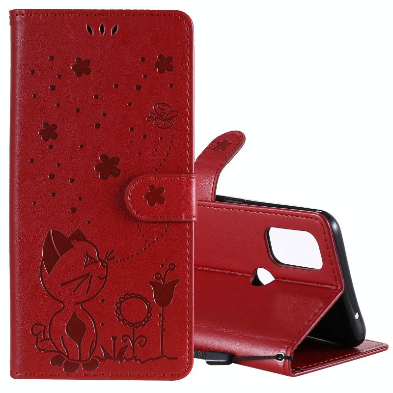 For OnePlus Nord N10 5G Cat Bee Embossing Pattern Shockproof Horizontal Flip Leather Case with Holder & Card Slots & Wallet(Red)