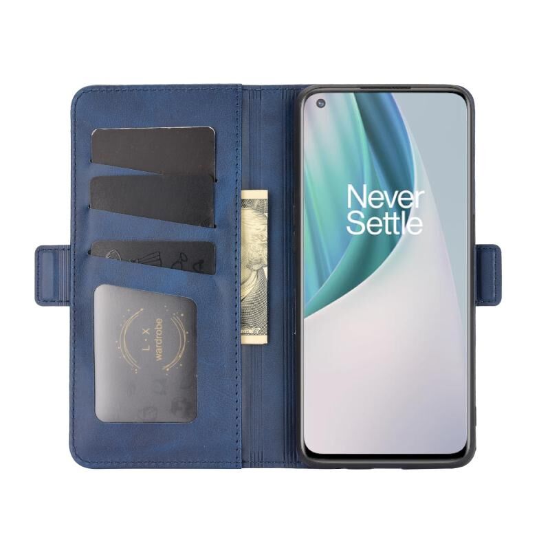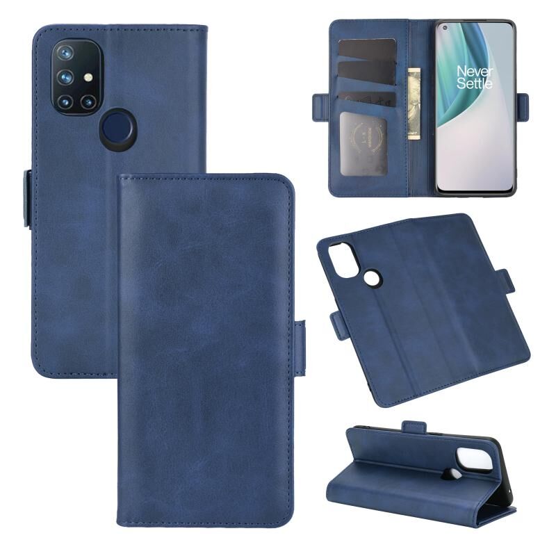 Για OnePlus Nord N10 5G Διπλής όψης μαγνητική πόρπη οριζόντια Flip δερμάτινη θήκη με κάτοχο & υποδοχές καρτών & πορτοφόλι (σκούρο μπλε)