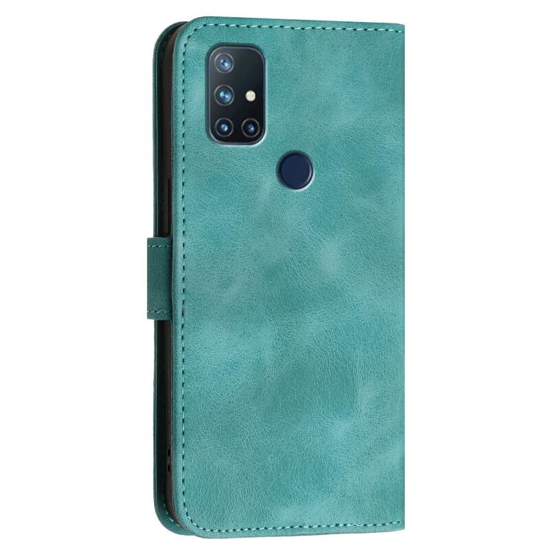 For OnePlus Nord N10 5G Grid Butterfly Embossed Pattern Flip Leather Phone Case with Lanyard(Light Blue)
