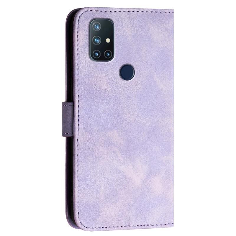 For OnePlus Nord N10 5G Grid Butterfly Embossed Pattern Flip Leather Phone Case with Lanyard(Light Purple)