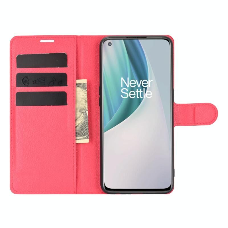 Για OnePlus Nord N10 5G Litchi υφή οριζόντια Flip προστατευτική θήκη με κάτοχο & υποδοχές για κάρτες & πορτοφόλι (κόκκινο)