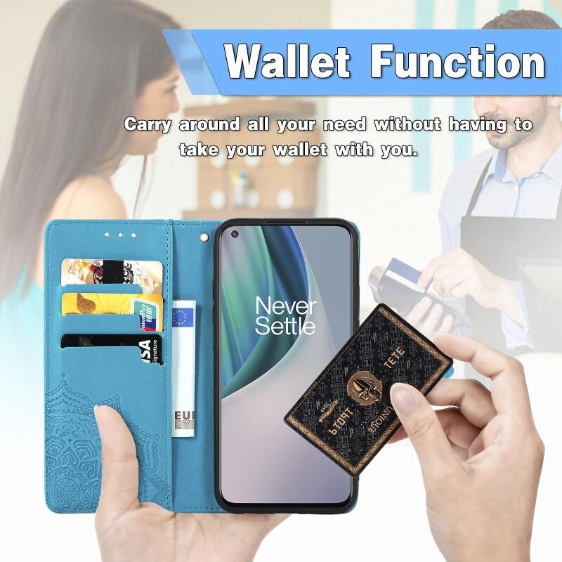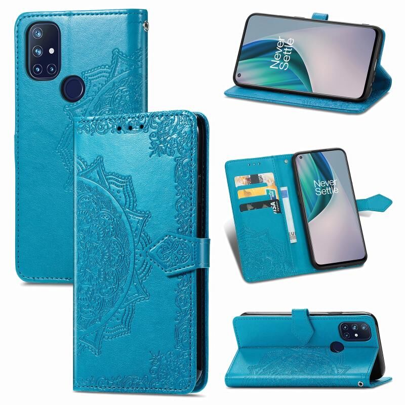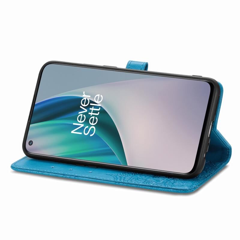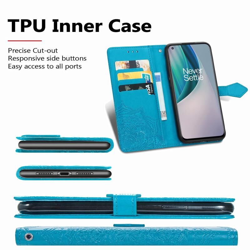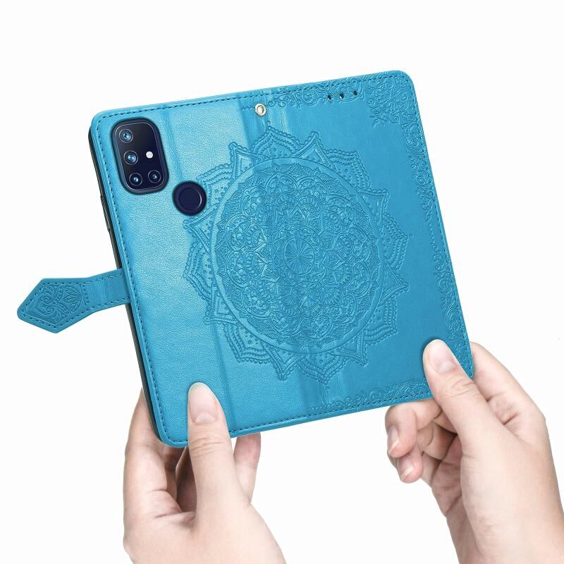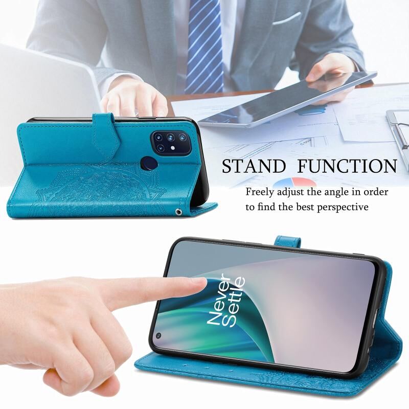 Θήκη δέρματος οριζόντιας αναδίπλωσης με ανάγλυφο σχέδιο μανταλάς και λουλουδιών για OnePlus Nord N10 5G (Μαύρο)