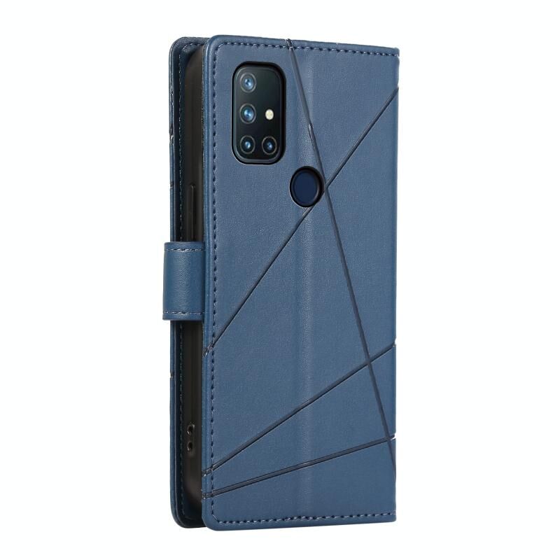 Θήκη τηλεφώνου για OnePlus Nord N10 5G από γνήσιο δέρμα PU με ανάγλυφη υφή και γραμμές (Μπλε)
