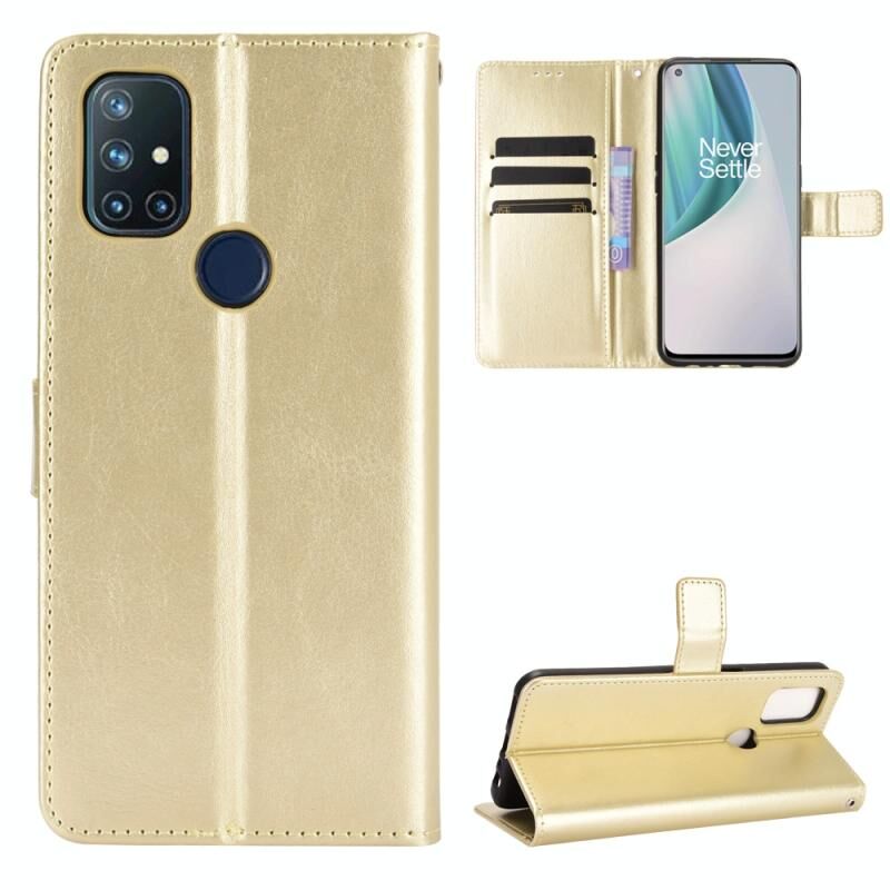 Για OnePlus Nord N10 5G Retro Crazy Horse Υφή οριζόντια Flip δερμάτινη θήκη με θήκη & υποδοχές καρτών & πλαίσιο φωτογραφιών (χρυσό)