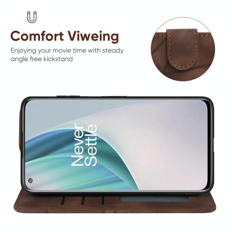 Για OnePlus Nord N10 5G Skin Feel γεωμετρικές γραμμές δερμάτινη θήκη τηλεφώνου (καφέ)