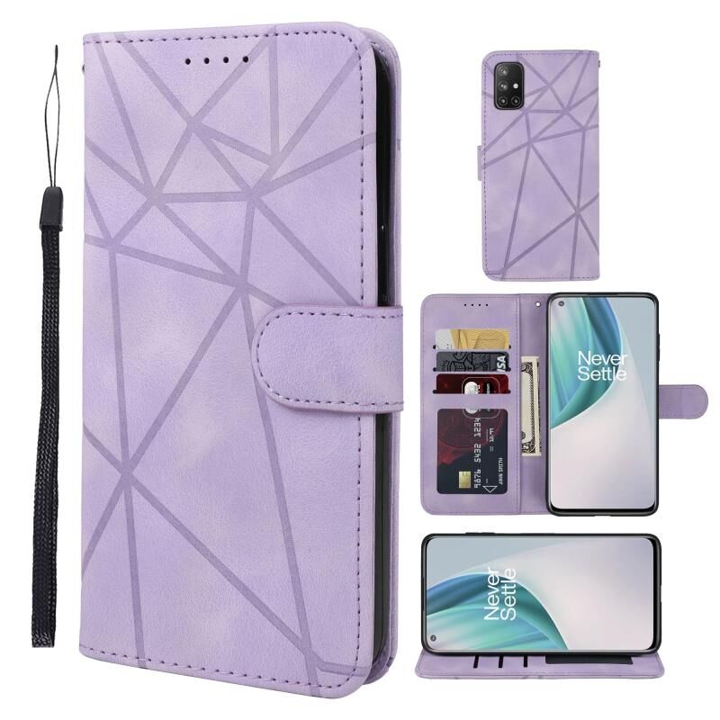 Για OnePlus Nord N10 5G Skin Feel γεωμετρικές γραμμές δερμάτινη θήκη τηλεφώνου (μωβ)