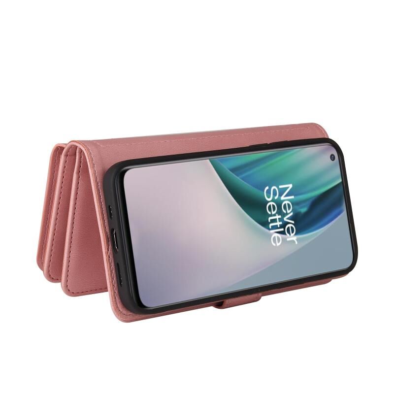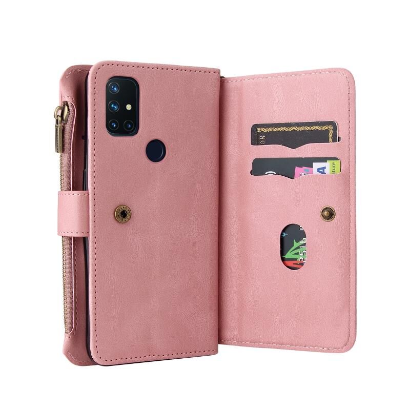 Για OnePlus Nord N10 5G δέρμα αίσθηση PU + TPU οριζόντια Flip δερμάτινη θήκη με κάτοχο & 15 κάρτες Slot & πορτοφόλι & φερμουάρ τσέπη & Lanyard (ροζ)