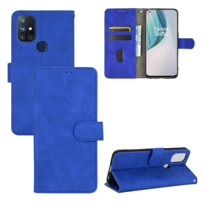 For OnePlus Nord N10 5G Solid Color Skin Feel Magnetic Buckle Horizontal Flip Calf Texture PU Leather Case with Holder & Card Slots & Wallet(Blue)