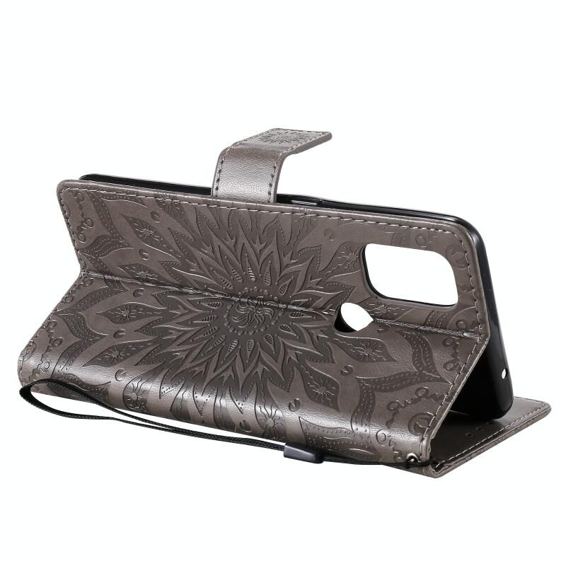 For OnePlus Nord N10 5G Sun Embossing Pattern Horizontal Flip Leather Case with Card Slot & Holder & Wallet & Lanyard(Grey)