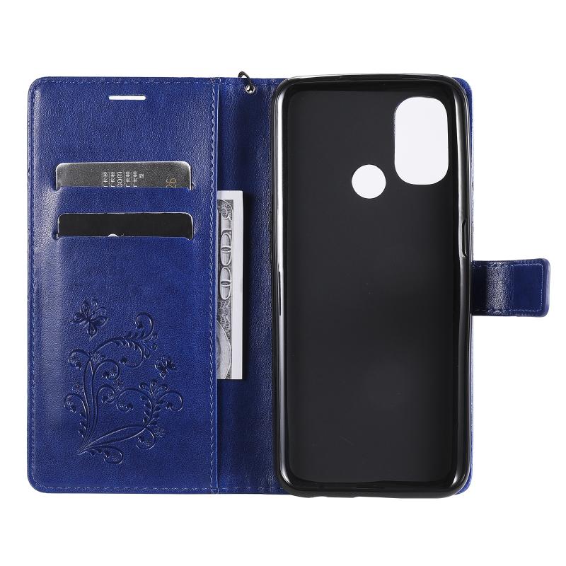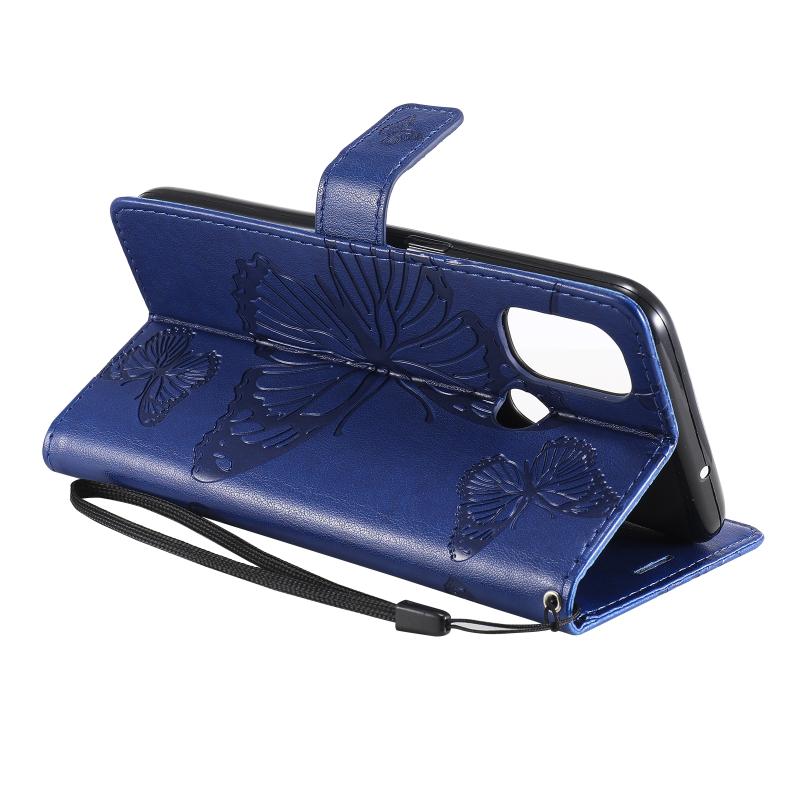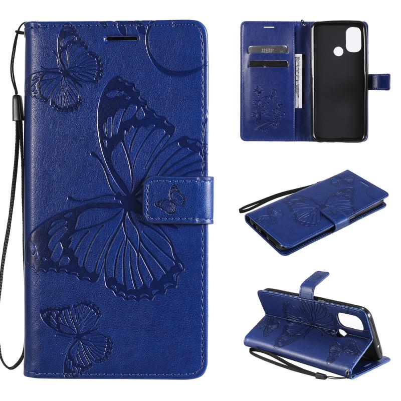 For OnePlus Nord N100 5G 3D Butterflies Embossing Pattern Horizontal Flip Leather Case with Holder & Card Slot & Wallet(Blue)