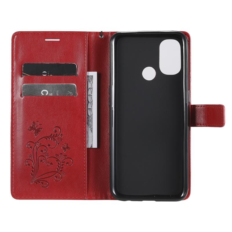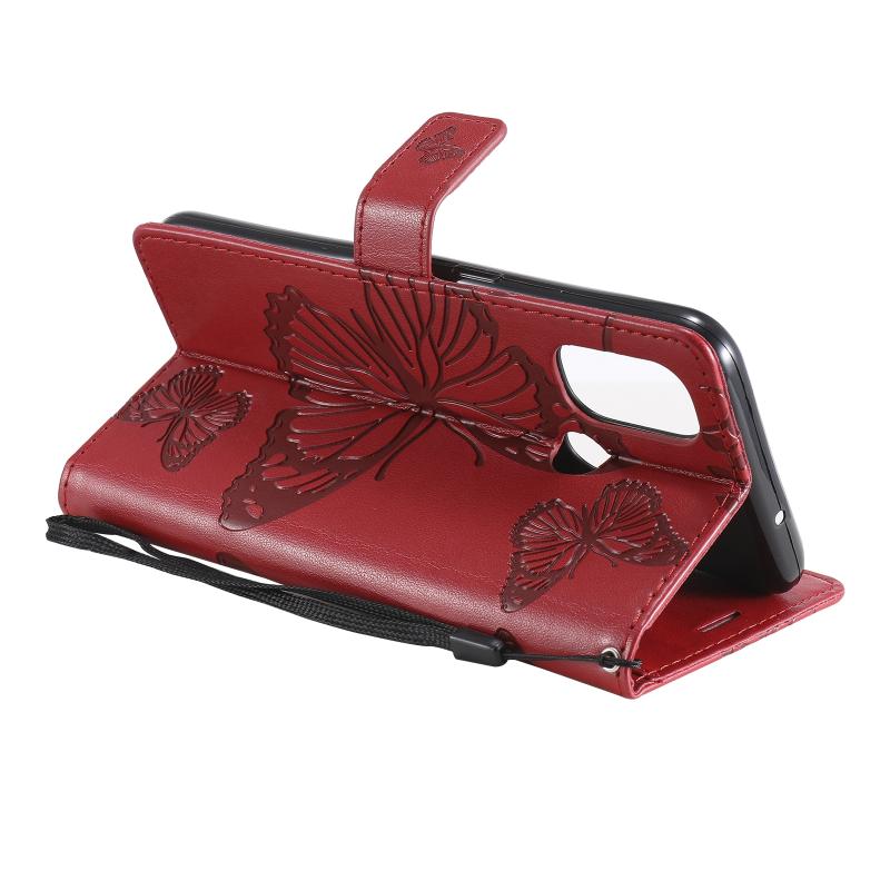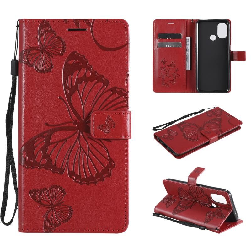 For OnePlus Nord N100 5G 3D Butterflies Embossing Pattern Horizontal Flip Leather Case with Holder & Card Slot & Wallet(Red)