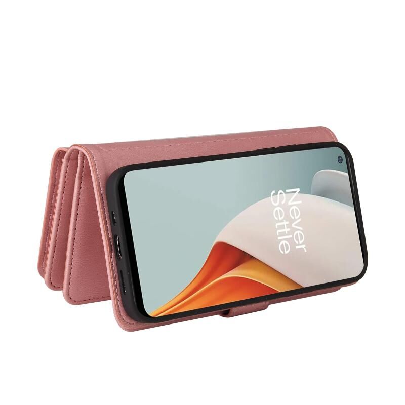 Για OnePlus Nord N100 5G δέρμα αίσθηση PU + TPU οριζόντια Flip δερμάτινη θήκη με κάτοχο & 15 κάρτες Slot & πορτοφόλι & φερμουάρ τσέπη & Lanyard (ροζ)