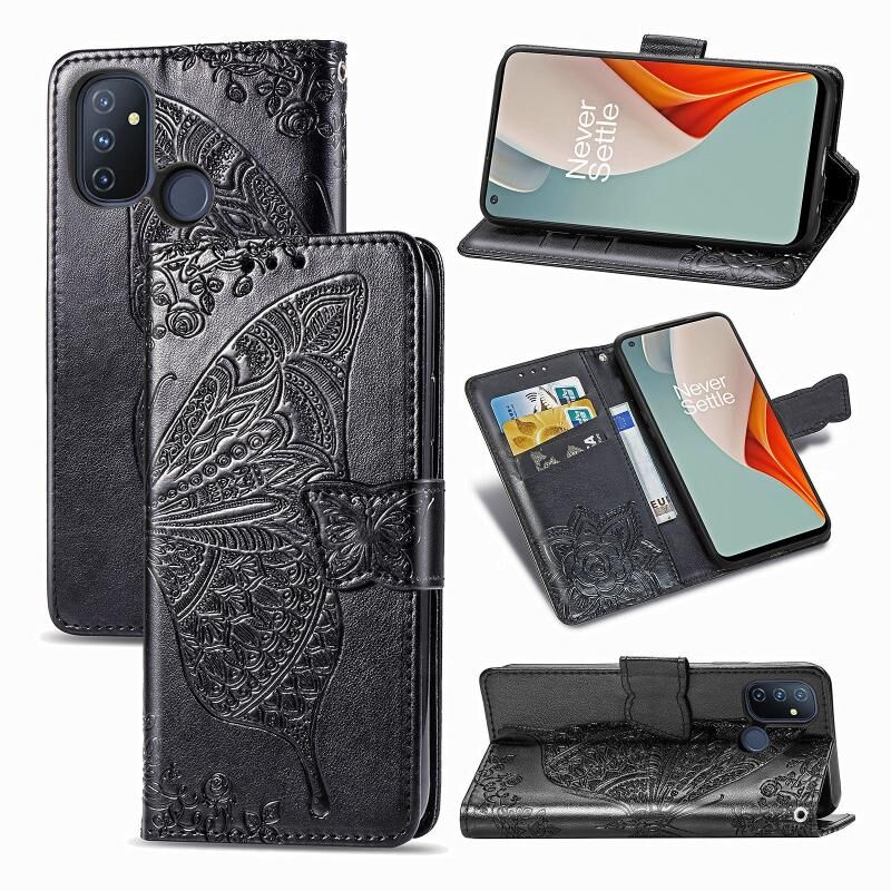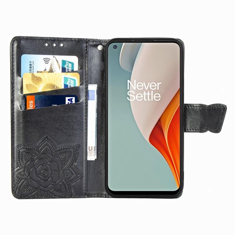 Για OnePlus Nord N100 πεταλούδα αγάπη λουλούδι ανάγλυφο οριζόντια Flip δερμάτινη θήκη με βραχίονα / υποδοχή κάρτας / πορτοφόλι / κορδόνι (μαύρο)