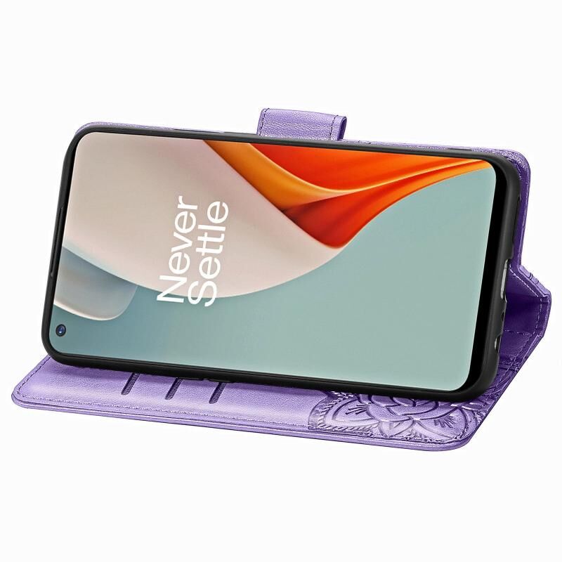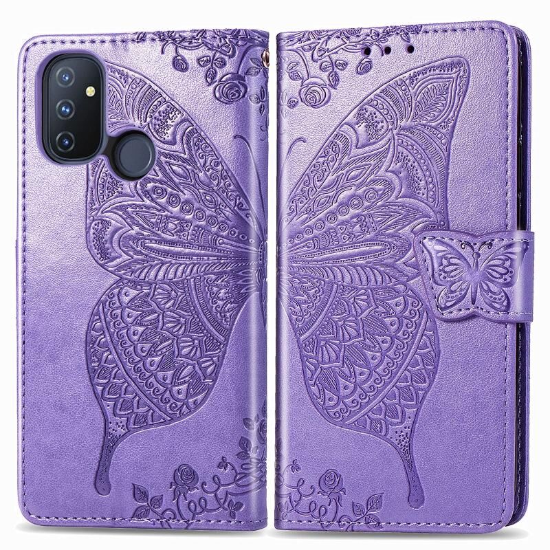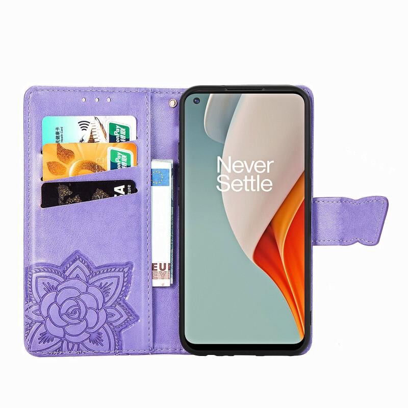 Για OnePlus Nord N100 πεταλούδα αγάπη λουλούδι ανάγλυφο οριζόντια Flip δερμάτινη θήκη με βραχίονα / υποδοχή κάρτας / πορτοφόλι / κορδόνι (Light Purple)