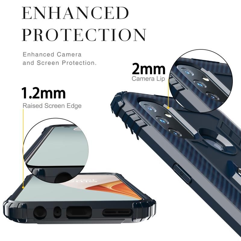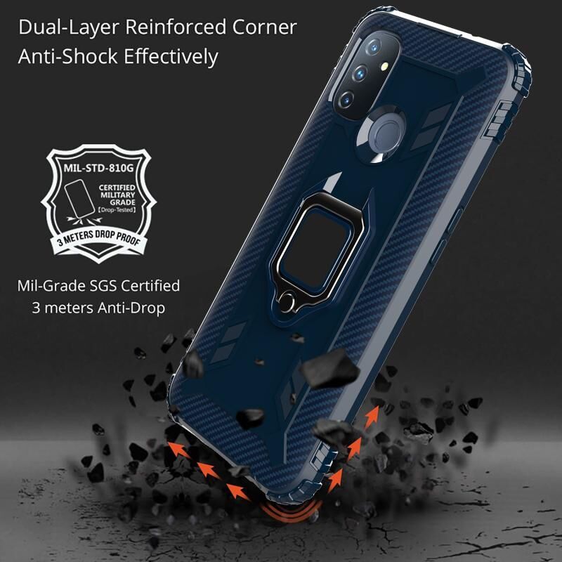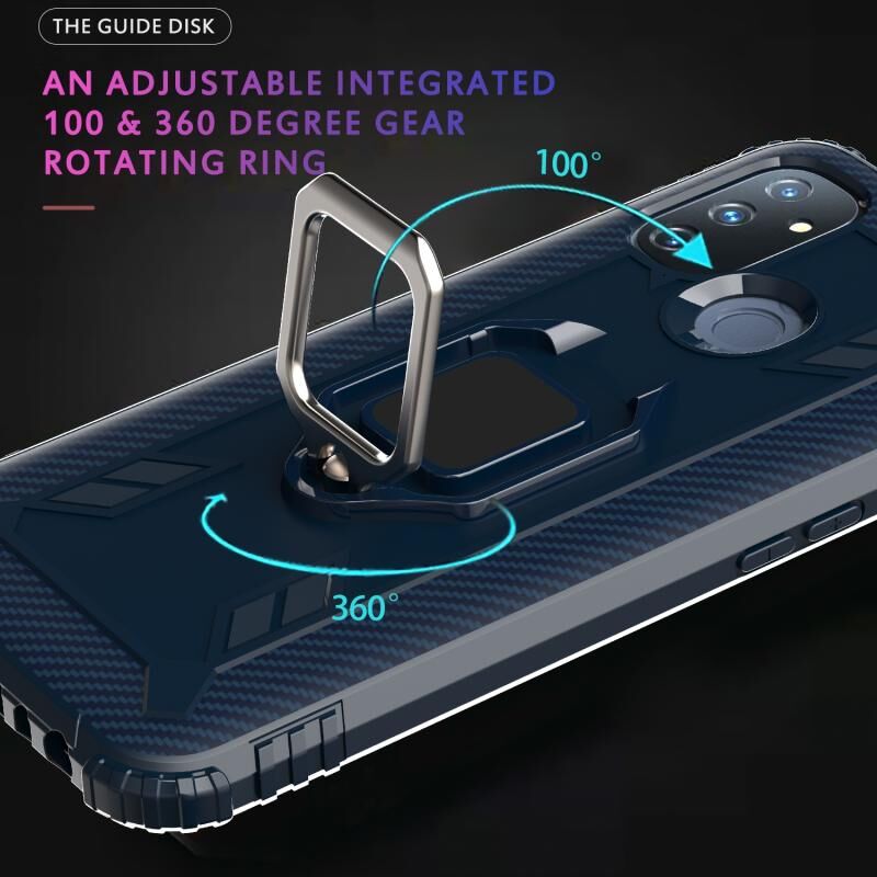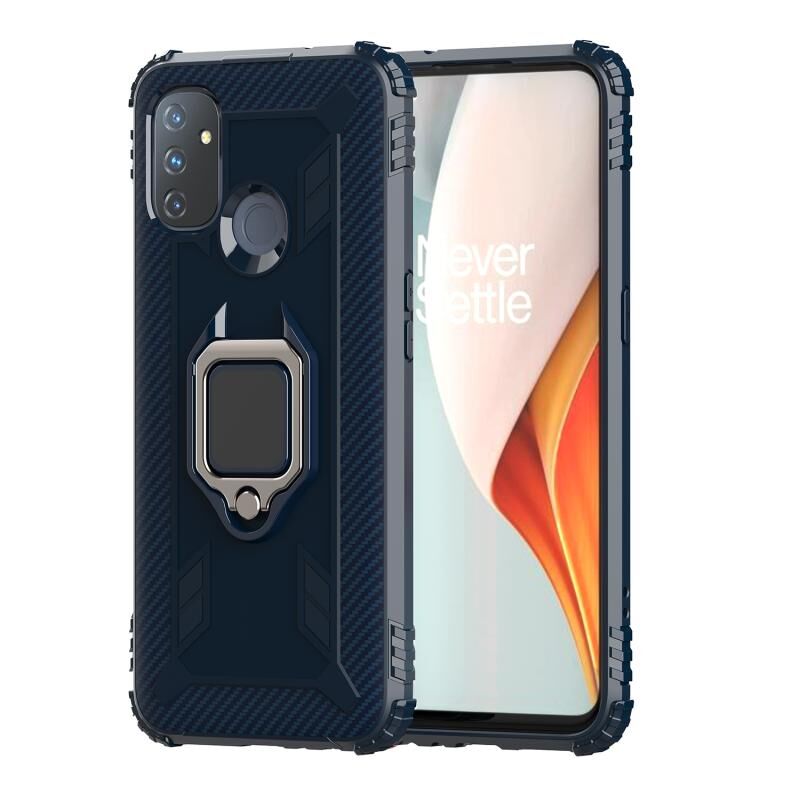 Για OnePlus Nord N100 Carbon Fiber Προστατευτική θήκη με 360 μοίρες περιστρεφόμενο δαχτυλίδι κάτοχος (μπλε)