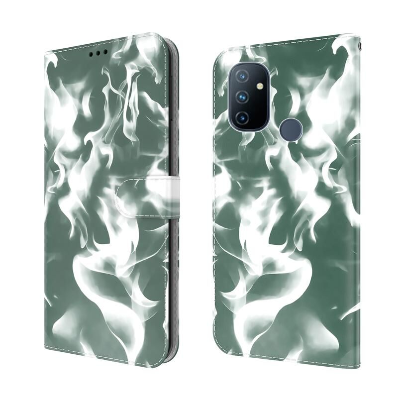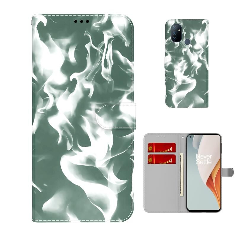 Για OnePlus Nord N100 Cloud Fog μοτίβο οριζόντια Flip δερμάτινη θήκη με κάτοχο & υποδοχή για κάρτες & πορτοφόλι (σκούρο πράσινο)