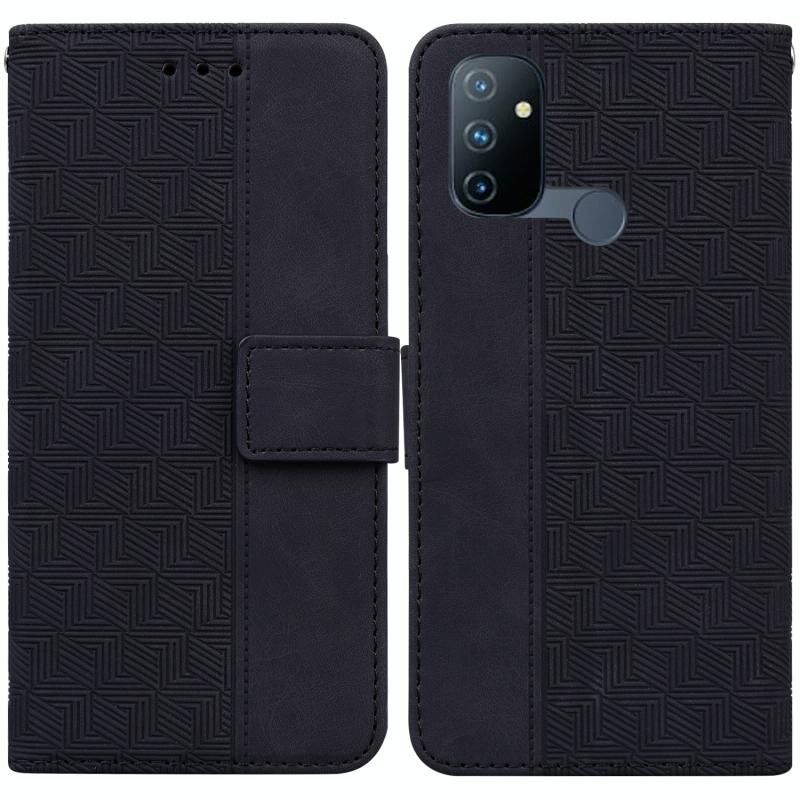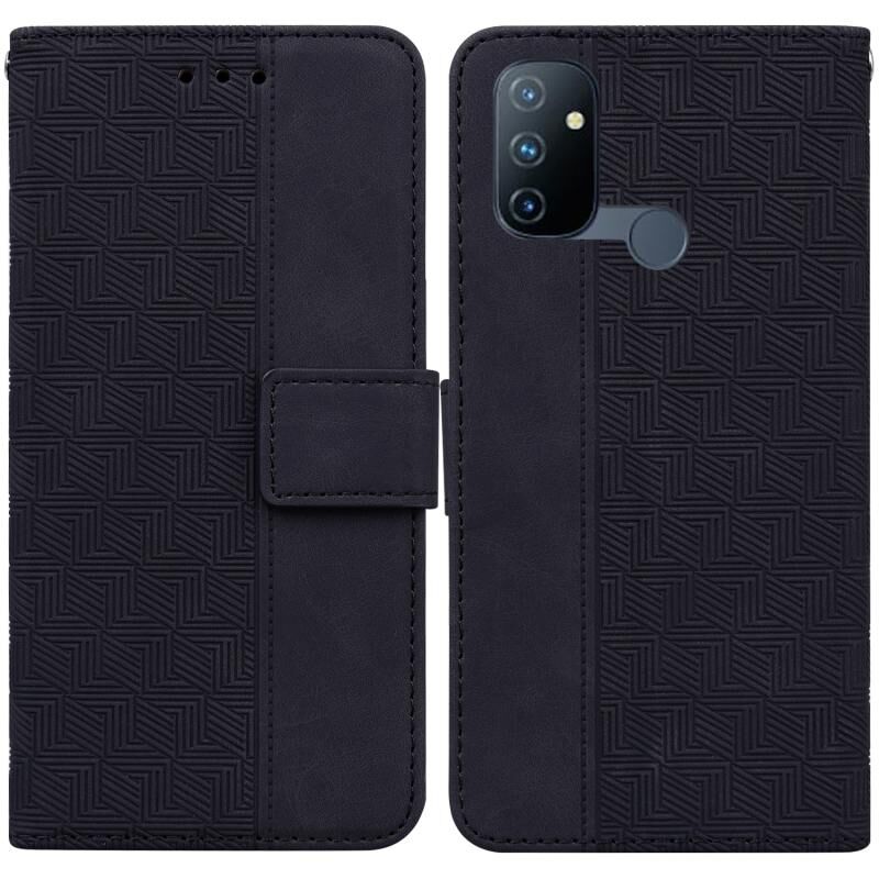 Για OnePlus Nord N100 γεωμετρική ανάγλυφη δερμάτινη θήκη τηλεφώνου (μαύρο)