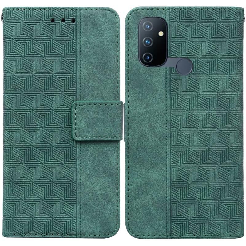 Για OnePlus Nord N100 γεωμετρική ανάγλυφη δερμάτινη θήκη τηλεφώνου (πράσινο)