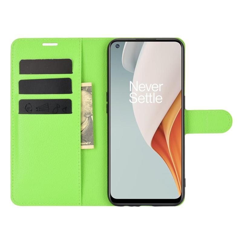 Για OnePlus Nord N100 Litchi Υφή Οριζόντια Flip προστατευτική θήκη με κάτοχο & υποδοχές για κάρτες & πορτοφόλι (πράσινο)