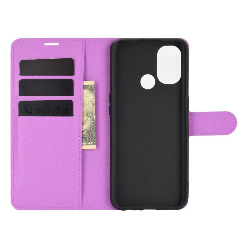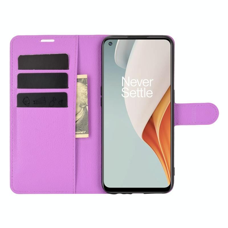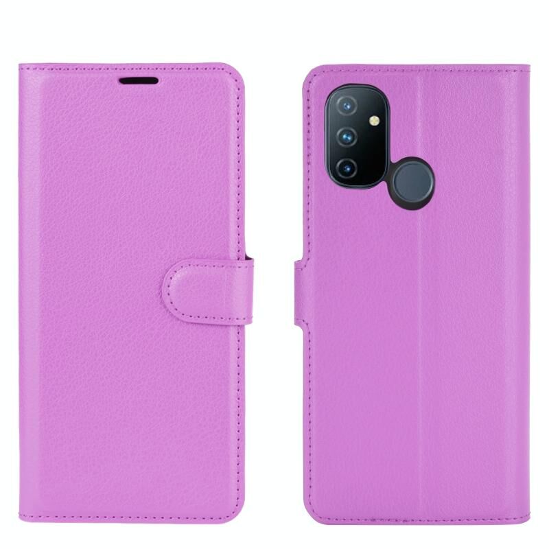 Για OnePlus Nord N100 Litchi Υφή Οριζόντια Flip προστατευτική θήκη με κάτοχο & υποδοχές για κάρτες & πορτοφόλι (μωβ)