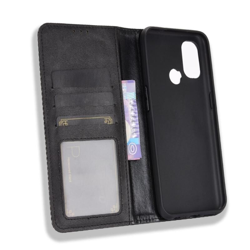 Για OnePlus Nord N100 Μαγνητική πόρπη Retro Crazy Horse Υφή οριζόντια Flip δερμάτινη θήκη με υποδοχή & υποδοχές καρτών & πλαίσιο φωτογραφιών (μαύρο)