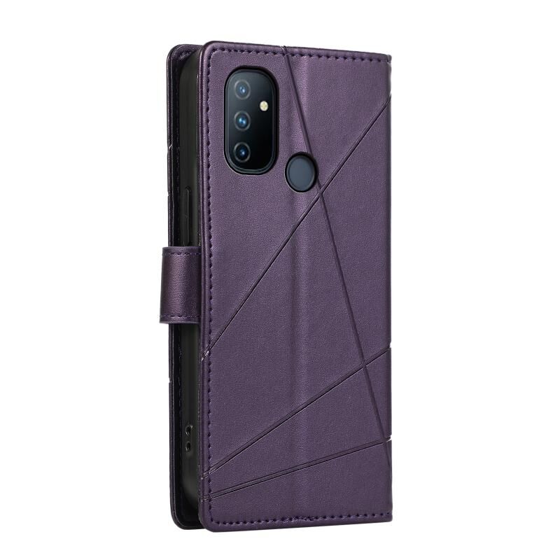 Θήκη τηλεφώνου OnePlus Nord N100 από γνήσιο δέρμα PU με ανάγλυφη υφή και λεπτή γραμμή (Μπλε)