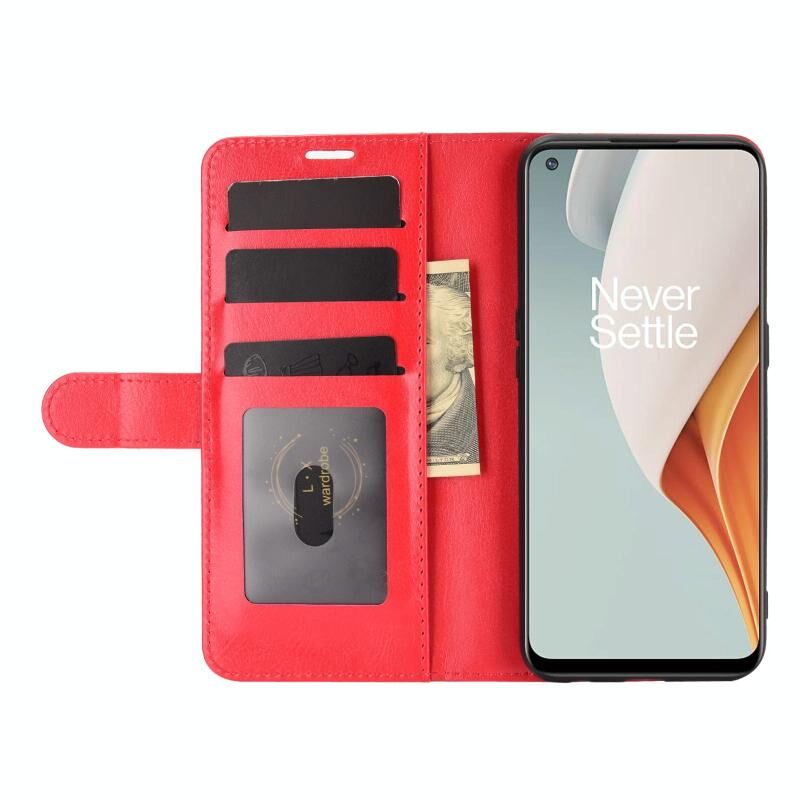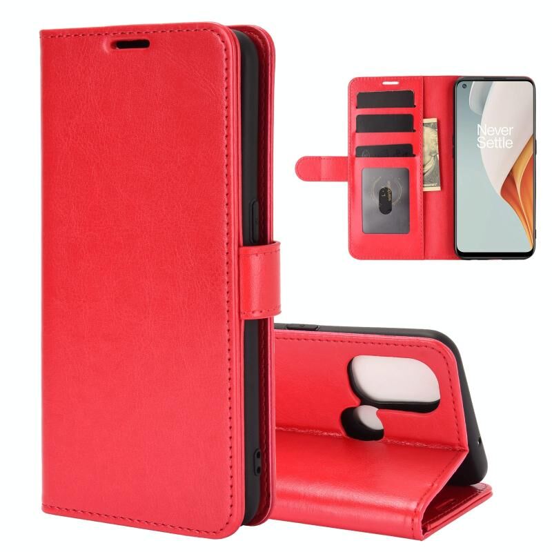 Για OnePlus Nord N100 R64 Υφή ενιαία οριζόντια Flip προστατευτική θήκη με υποδοχή & υποδοχές για κάρτες & πορτοφόλι & πλαίσιο φωτογραφιών (κόκκινο)