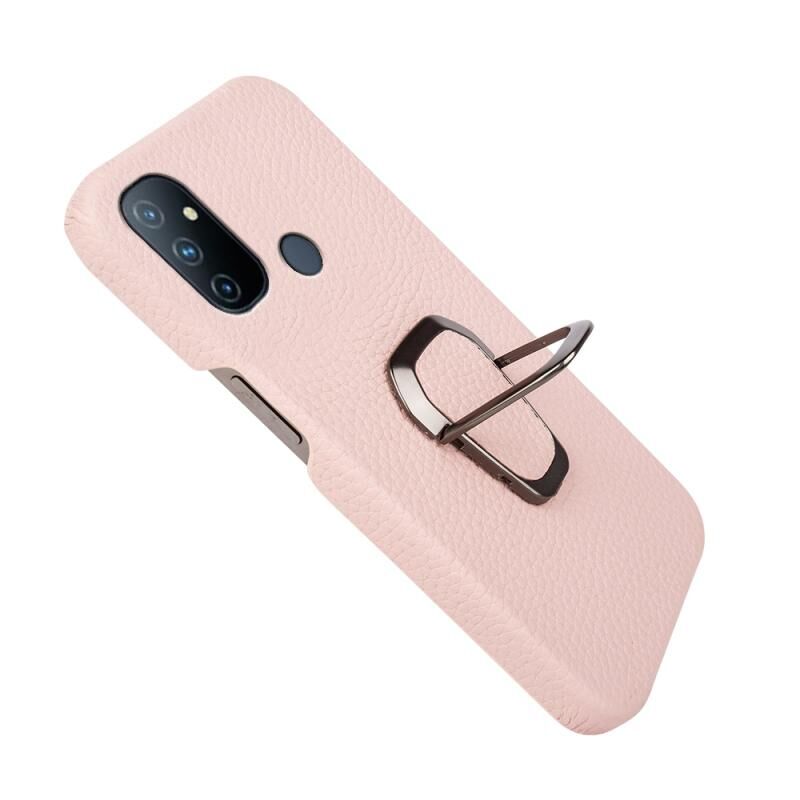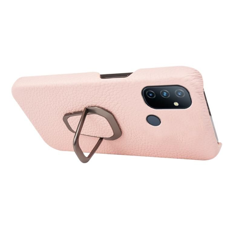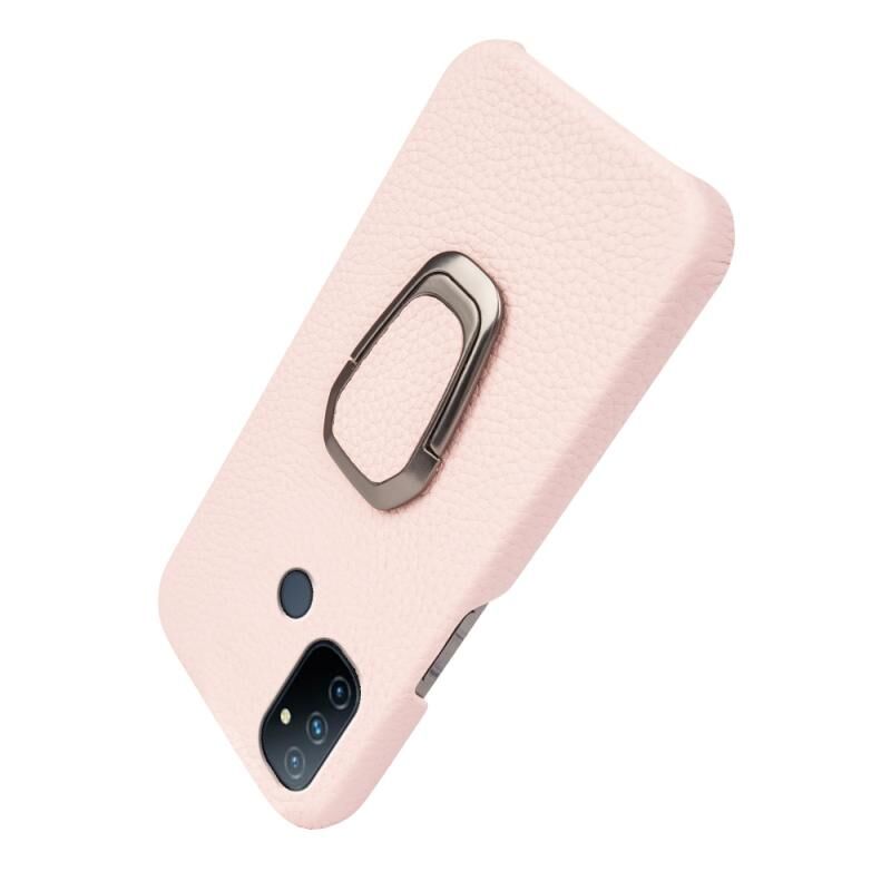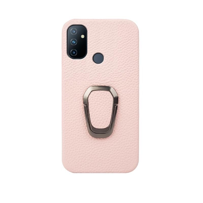 For OnePlus Nord N100 Ring Holder Litchi Texture Genuine Leather Phone Case(Pink)